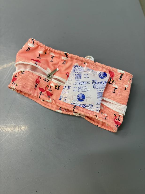 中に保冷剤を入れて、首を冷やして暑さを少しでも和らげています。 デザインも可愛くて、オススメです✨
