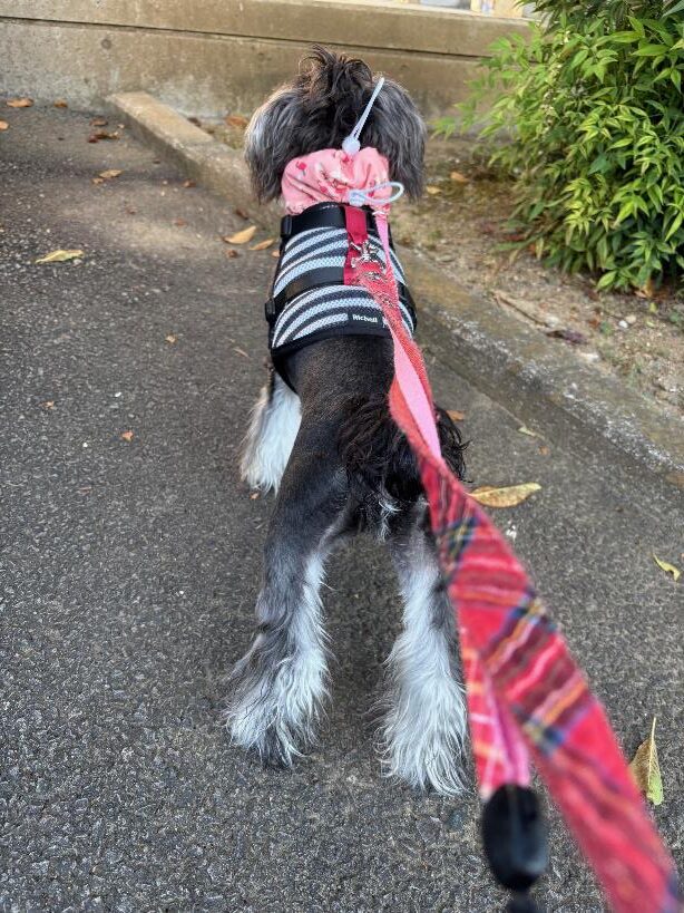 皆様、こんにちは‼︎ まだまだ暑い日が続いています。 お散歩は時間ずらしたとしても暑いですよね🥵 そこで、うちの子の暑さ対策✨ クールネックです‼︎